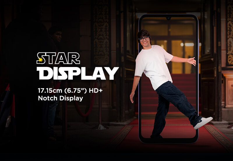 | Size | 17.15cm (6.75") HD+ Notch Display with 2.5D Glass, 60Hz Refresh Rate & Aspect Ratio of 20:9 |